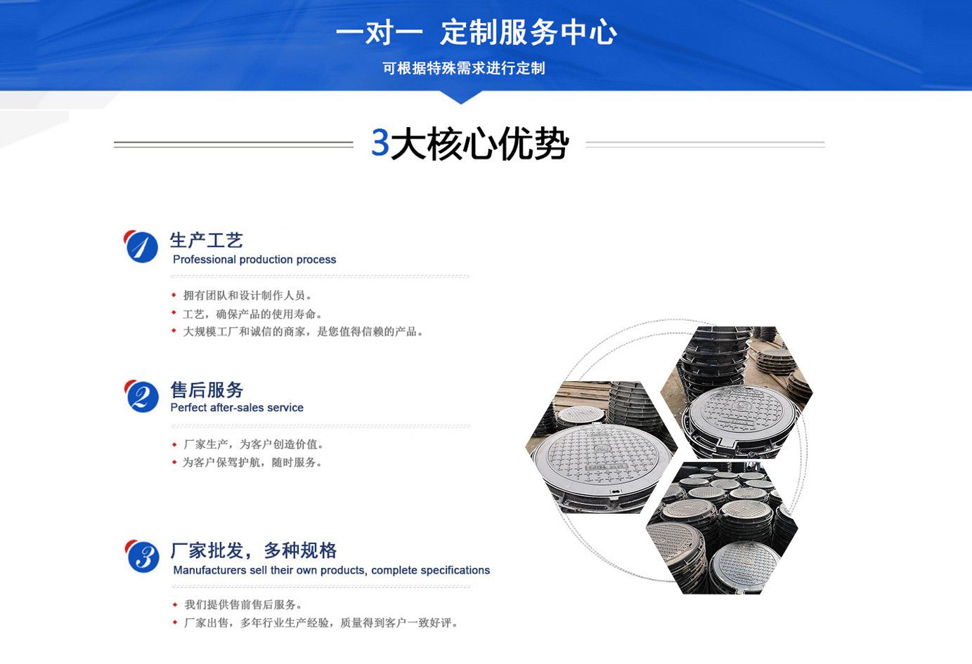 山東聊城健暉鑄造有限公司主營(yíng)各種球墨鑄鐵井蓋,球墨鑄鐵防盜井蓋,球墨鑄鐵方形井蓋,球墨鑄鐵井蓋廠家等產(chǎn)品,可廣泛應(yīng)用于市政建設(shè)、軌道交通設(shè)施、城市園林綠化、安防配套設(shè)施、石油化工等諸多領(lǐng)域?! ‘a(chǎn)品采用良好的工藝流程,以確保產(chǎn)品質(zhì)量的穩(wěn)定性:以良好的檢測(cè)設(shè)備,確保質(zhì)量的可靠性。廣泛應(yīng)用于國(guó)內(nèi)外城市的市政建設(shè),通信,自來水,消防,園林,環(huán)保等行業(yè),產(chǎn)品大獲贊譽(yù)! 我們堅(jiān)持“質(zhì)量為本、用戶至上、科技創(chuàng)新、科學(xué)管理”的經(jīng)營(yíng)方針。 面向未來,我們積極響應(yīng)新時(shí)代的號(hào)召,走“一帶一路”、堅(jiān)持“綠色環(huán)?!钡膰?guó)家方針政策,秉承“安甄致選,普利天下”的企業(yè)理念,共同鑄就新時(shí)代的輝煌篇章。...